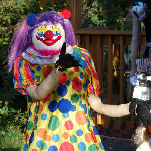 Pumpkin People JugglerLionClown500MakeupClown500The Pumpkin People have returned with the foliage season in the Mt. Washington Valley. A Jackson village tradition for 26 years, there are over 55 displays to view until October 20.. Themes vary from White Mountain artists, to the newest British royal, to Despicable Me, Eskimos, Pumpkin Flowers, Harry Potter and more. Here at the Inn at Ellis River we are ‘Clowning Around’. Tara and Tony, the two little children, are enjoying the fun under the Big Top, while Fiona, our featured Pumpkin every year, is selling popcorn to one and all.. The trained Pumpkin Bear waits patiently while Sebastian the Pumpkin Lion leaps through one clown’s hoop and another clown juggles three balls in the air. Backstage in the corner, the clown for the next act is busy finishing his makeup. So come join the fun and pose for your own picture ‘Clowning Around’ at the circus.